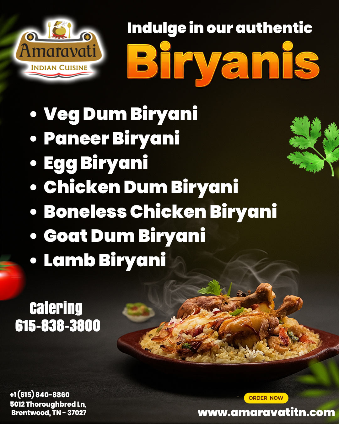 Craving authentic Indian biryani in Brentwood & Nashville, TN? Try Amaravati Indian Cuisine!