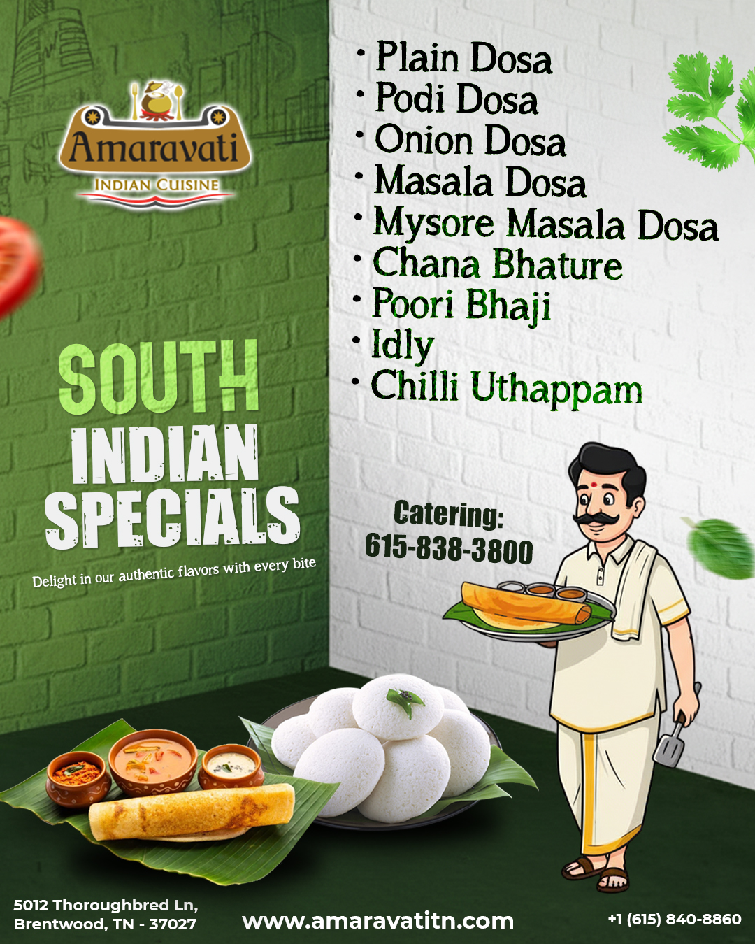Immerse yourself in South Indian flavors! Our Idly, Uthappam, and Dosa specials!